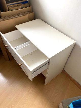 Vendemos por no usar, bonita cajonera de 4 cajones, en color blanco de Ikea, para cualquier estancia de la casa y gran capacidad de almacenamiento, marcas de uso normales pero buen estado, medidas 70 alto 35 ancho y 50 fondo, vendemos por 35 euros.