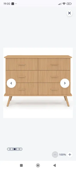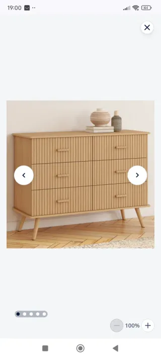 SE ENCUENTRA EN PUERTOLLANO. Cómoda de madera sin estrenar, aún en su embalaje original. - Diseño moderno con líneas verticales. - Patas cónicas de madera. - Tiradores integrados en los cajones. NO PUEDO ACEPTAR REBAJA PORQUE PAGUE 119€ más GASTOS DE ENVÍO 49,99€ = 165,98€ Por error mío en un mal cálculo de medidas y por agotar el plazo de la devolución ya no puedo devolverla. Comprada EN MANO A MANO. Pueden comprobarlo.