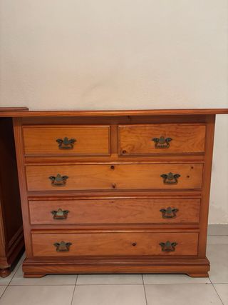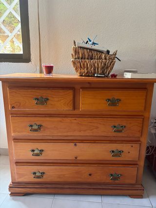 Cómoda de madera maciza de dormitorio con seis cajones amplios. Su diseño clásico se adapta a cualquier estilo de habitación. - Fabricada en madera maciza. - Tiradores metálicos. - Acabado en tono natural.