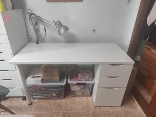 Mesa de madera con cajonera para escritorio. Tengo tambien la cama y una libreria a juego