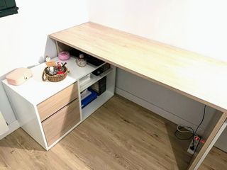 Mesa estudio blanca con cajonera azul