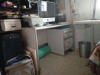 Mesa de estudio en perfecto estado, con 3 cajoneras. 3 cm de grosor de tabla . Incluida silla de estudio y lámpara a conjunto todo en perfecto estado.