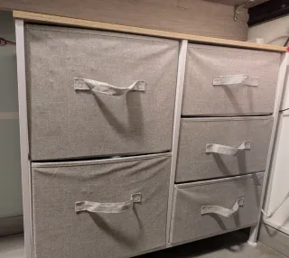 Cajonera de cinco cajones, ideal para organizar tu habitación. - Diseño moderno y funcional. - Combinación de colores neutros. Alto: 110cm Ancho: 60cm Fondo: 40cm Para recoger. Planta 4ta real con ascensor pequeño.