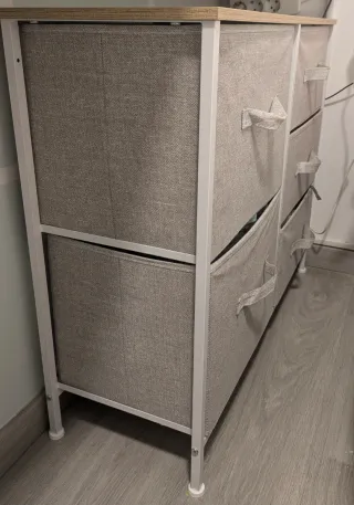 Cajonera de tela beige y gris