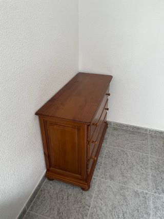 Se vende cómoda de madera en muy buen estado con 3 cajones amplios y espejo a juego. Ideal para dormitorio. Madera maciza, resistente y de buena calidad. Medidas de la cómoda Alto: 79 Largo: 112 Profundidad: 45 Medidas del espejo: Alto: 113 Largo: 82 Recogida en mano.