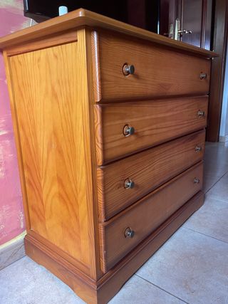 Elegante cómoda de madera maciza con un diseño clásico. - Cuatro amplios cajones. - Tiradores metálicos. - Acabado pulido.