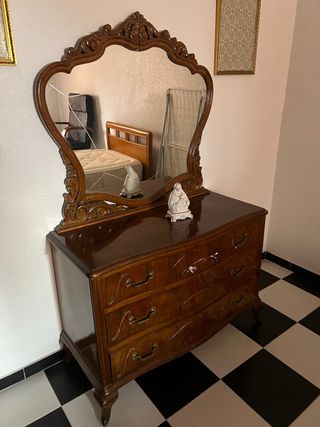 Cómoda de madera con espejo