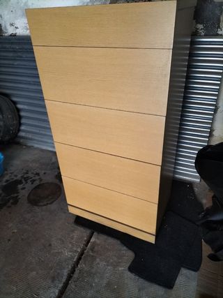 Cajonera con ruedas y dos cajones, uno grande y uno pequeño. Abre y cierra perfectamente, pero hay que cambiar la manilla del cajón de arriba.