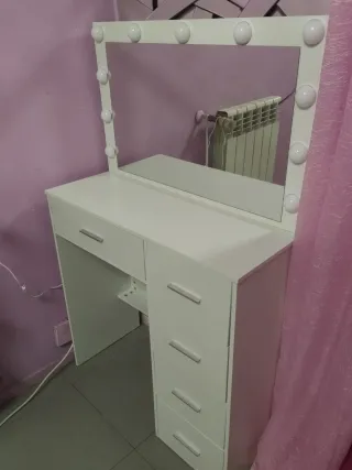 Tocador de maquillaje con un diseño moderno y funcional. Nuevo solo está montado y no me encaja la medida,disponemos de su caja.