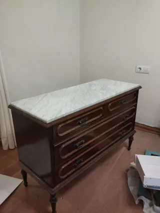 Cómoda de madera con tapa de mármol