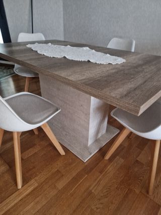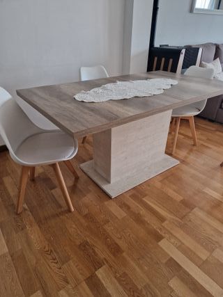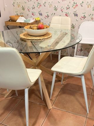 Mesa redonda de madera con 4 sillas ( alfombra)??
