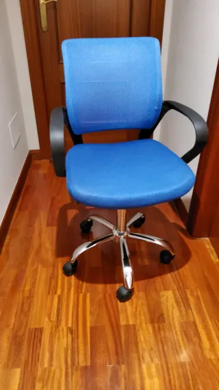 Silla de oficina azul y plateada