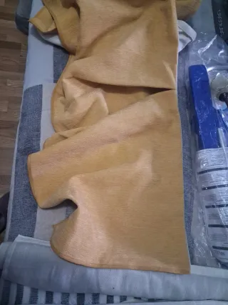 Conjunto de ropa de cama y decoración en tono dorado. - Colcha de matrimonio 1.35con estampado gravado, tela alta calidad - Funda para camilla a juego. - Dos fundas de cojín con detalle de pompones. Funda cojín plano de silla Las medidas que se ponen son orientativas porque exige wallapop. La medida exacta es de colcha de 1.35 . Las fotos se puede apreciar arrugadas por estar dentro de su funda con cremallera