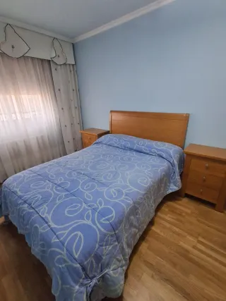 Conjunto de muebles de dormitorio de madera. - Cabecero de 135cm. - Dos mesitas de noche. - Cómoda. - Espejo.