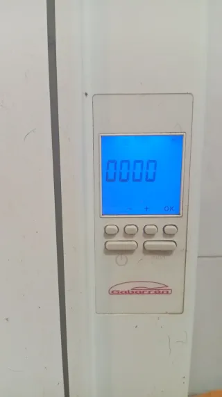 Emisor térmico de bajo consumo de 12 elementos Elnur Gabarron con una potencia de 1500W. Cuerpo de Aluminio. Ideal para calentar estancias de forma eficiente. Termostato y Control de temperatura digital. Programable cada día de la semana por horas. Incluye anclajes para pared.