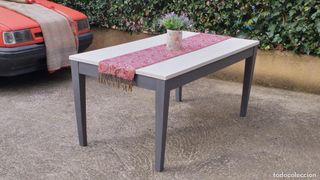 Mesa comedor madera vintage gris y blanca