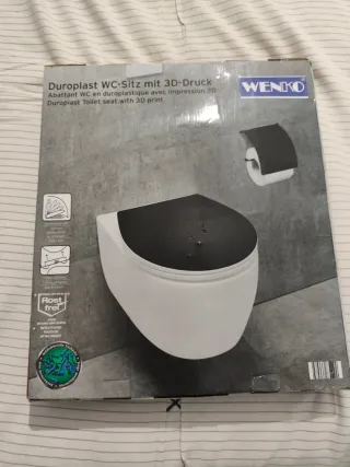 Tapa de WC de la marca WENKO con diseño de impresión 3D. Fabricada en duroplástico, es resistente y duradera. - Sistema de cierre suave Easy-Close. - Mecanismo de fijación rápida Quick-release. - Bisagras de acero inoxidable Rost frei (libre de óxido). - Superficie antibacteriana.