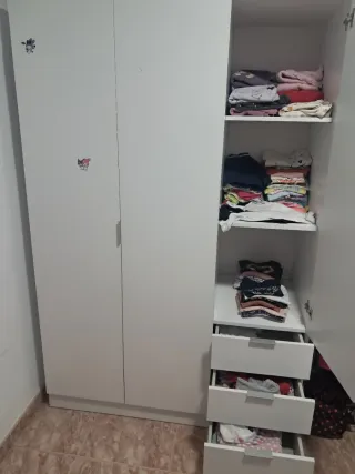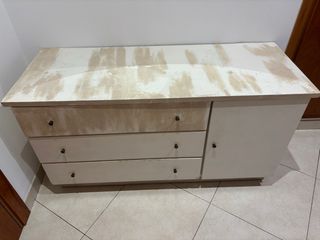 Mueble auxiliar de grande. Bastante usado, las tapas se le salen si tiras con demaiada fuerza. - Color blanco. - 4 cajones de almacenamiento.