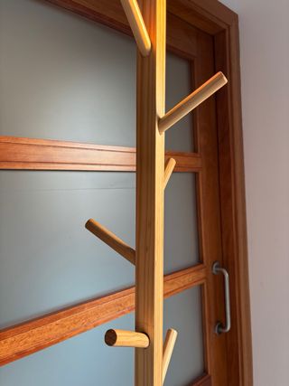 Perchero de pie de madera.