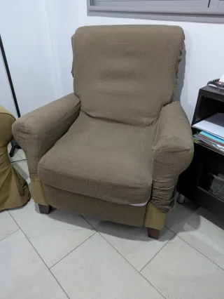 Butaca. Sillón reclinable de la marca Ikea, modelo Ektorp. Su diseño es clásico y se adapta a cualquier espacio. - Funda de tela. - Color beige neutro. Se incluye la funda que se ve en la foto, pero si no encaja con tu estilo puedes ponerle otra. Es un modelo reclinable y no es desenfundable, por eso lleva una funda. Es muy cómodo. Tengo dos iguales. Precio por unidad. Recoger en Caldes de Montbui.