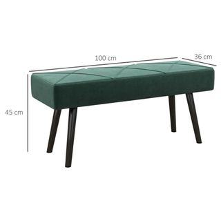 Elegante taburete con un diseño acolchado en rombos. - Tapizado en terciopelo. - Patas de acero resistentes. Taburete Pie de Cama Multifuncional con Pies de Acero y Asiento Acolchado para Entrada Pasillo 100x36x45 cm Verde 831-691V00GN