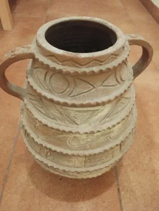 Macetero de terracota con un diseño único y detalles grabados. - Acabado artesanal. - Apto para uso interior o exterior. - Ideal para plantas pequeñas y medianas. Vintage años 50. Era de mi abuela.
