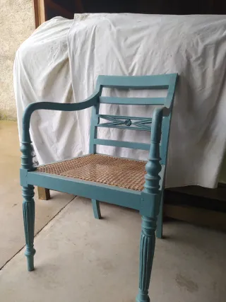 Sillón de comedor azul envejecido