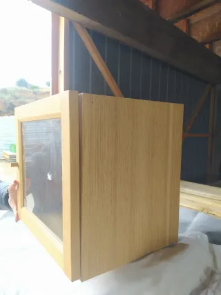 Vitrina cuadrada de madera de Ikea. Esta vitrina es un anexo de mueble Ikea. Solo necesitaría un soporte madera para la parte inferioir. Ideal para exhibir objetos pequeños. - Marco de madera. - Panel frontal transparente.