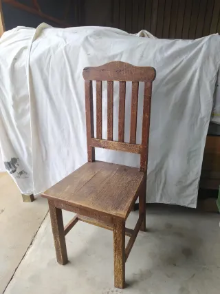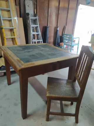 Conjunto de mesa con sobre de pizarra y sillas. La madera del conjunto es tropical del Brasil, muy resistente y robusta.