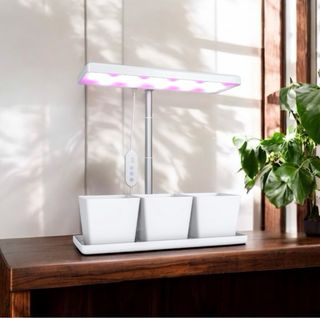 Envío gratis ( consulta como) Subo más productos a diario Sistema de iluminación LED diseñado para el crecimiento de plantas en interiores. Incluye tres macetas blancas y una bandeja. - Luz LED de espectro completo. - Altura ajustable. - Temporizador integrado.