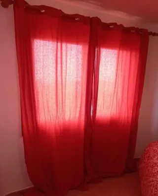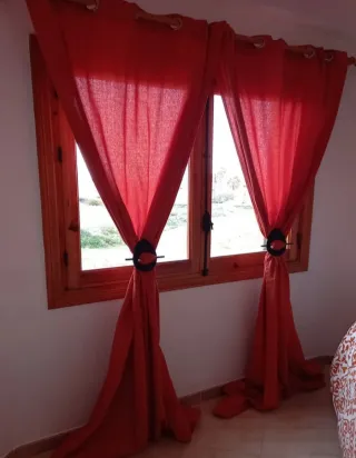 Cortinas de tela de la marca Ikea en color naranja. Son dos cortinas con un diseño moderno y elegante. - Dos unidades incluidas. - Cuentan con ojales para colgar. - Incluyen abrazaderas decorativas. -Tienen el largo sin arreglar