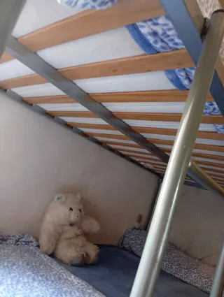 Estructura de litera en buen estado. - Fabricada con una combinación de metal y madera. - Diseño robusto y duradero.
