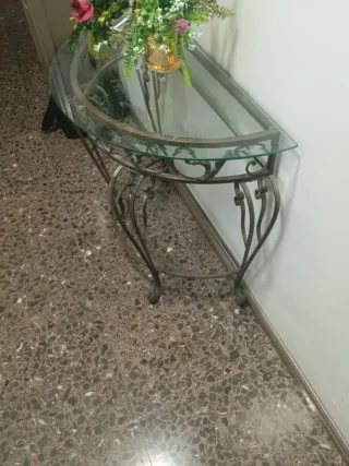 Mesa consola cristal y metal dorada