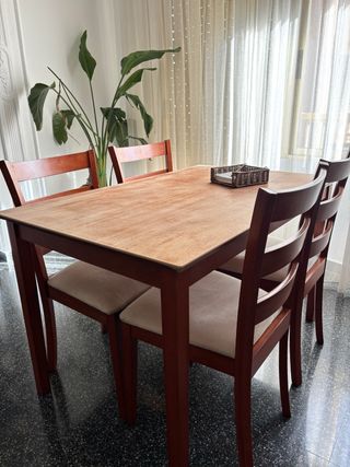 Mesa de cocina extensible de madera + sillas