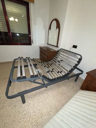 Se vende base de cama articulada eléctrica con colchón de 90 (Usado). La cama funciona perfectamente y esta en muy buen estado. El colchón sí esta más usado y tiene alguna mancha. - Estructura metálica resistente. - Láminas de madera para soporte del colchón. - Mando electrónico por cable.