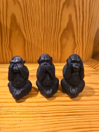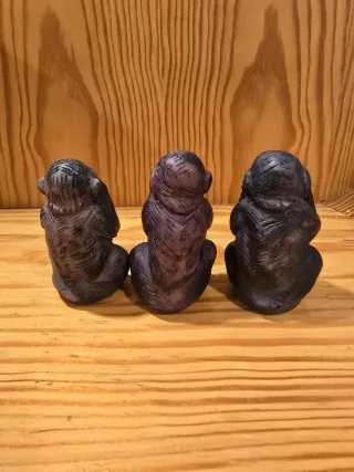 Conjunto de tres figuras decorativas de monos sabios. - Diseño clásico de los tres monos. - Acabado detallado.
