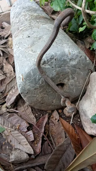 Pieza antigua de moler grano tallada a mano con marmol local.De 1900aprox..Su diseño cilindrico y material de calidad le otorgan un caracter unico y lo convierten en un objeto de gran interés. - Material: Mármol macizo. - Acabado: Superficie con vetas naturales.Con forma cilíndrica -Pieza etnográfica -Medidas aproximadas:80cm. de larga y 23cm. de alta -