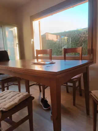 Mesa de comedor y 6 sillas de madera 1'60