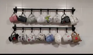 PERFECTO ESTADO. Barra 80 cm de pared versátil para colgar accesorios en la cocina, el baño o el dormitorio. Su diseño sencillo se adapta a diferentes espacios. - Material: Metal. - Color: Negro. - Ganchos a parte en packs de 5 por 1'5€. - Cada barra 5€. -Pack 5 barras + 25 ganchos= 30€