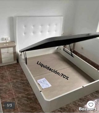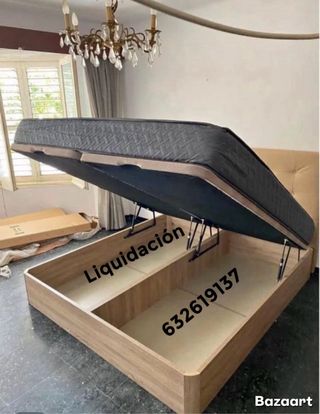 Base de canapé abatible con gran capacidad de almacenaje. Ideal para optimizar el espacio en tu habitación. - Liquidación 70%. - Contacto: 632619137.