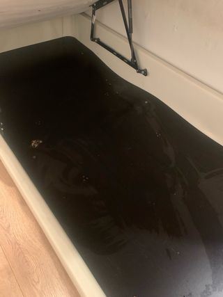 Canapé abatible de madera en color marrón oscuro. Está en buen estado y es ideal para almacenar cosas. Solo el canape en tiendas cuesra 550€ - Incluye estructura de canapé. - Dispone de un sistema de apertura fácil y cómodo.