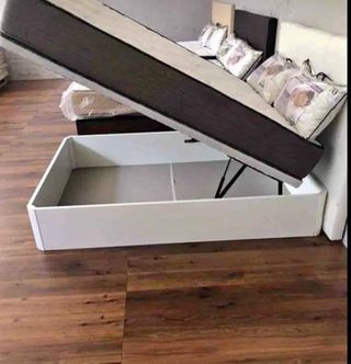 Base de cama tipo canapé abatible en color negro. Ideal para aprovechar el espacio de almacenamiento. - Estructura robusta. - Fácil acceso al interior. - Diseño moderno.
