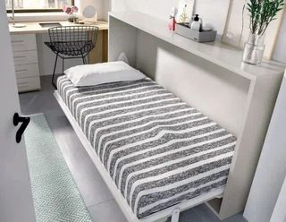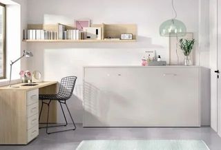 Cama abatible con escritorio integrado.