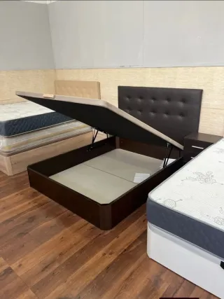 Se vende base de cama tipo canapé abatible. - Diseño moderno y funcional. - Amplio espacio de almacenamiento interior.