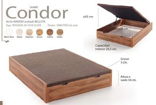Canapé abatible de madera extra reforzado grosor de la estructura 2,2 (opción de 30mm de grosor +30€) y de gran capacidad con útil interior de 28 cms y altura total de 34 cms. Incorpora aireadores de ventilación en la tapa. Disponible en colores,blanco,artic,cambrian,cerezo,wengue y roble natural. Tapas en color blanco o beige.Otras medidas consultarnos Envio y montaje opcional 95€,hasta 10 km. No entregamos fuera de Cataluña.