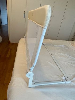Vendo 2 barreras Olmitos iguales. 18€ unidad 30€ las dos juntas. Están como nuevas guardadas en su funda. No hace falta extraerla para hacer la cama gracias a su movimiento abatible. Su sistema de plegado resulta ideal para viajar, ocupando poco espacio en su bolsa. Sistema de sujeción con tope ajustable que permite que la barrera quede bien sujeta evitando que se desplace. Fácil de instalar debajo del colchón.
