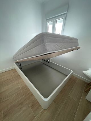 Se vende canapé abatible con colchón, ideal para aprovechar el espacio. canapé y colchón viscolastico 24 cm y el canapé es de madera gran capacidad 35 cm de grosor tapa reforzada - Incluye canapé y colchón - Canapé de madera - Medidas: •90x190=249€ •105x190=269€ •135x190=309€ •150x190=329€ - Color cambria blanco artico