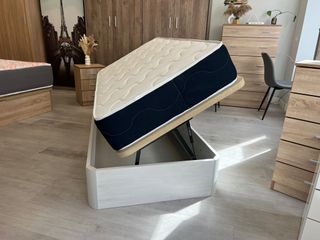 Base de cama tipo canapé con gran capacidad de almacenaje. - Estructura de madera. - Tapa abatible para acceder al interior.