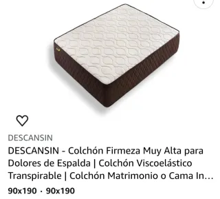 Colchón de látex de la marca DESCANSIN, con firmeza muy alta, ideal para aliviar dolores de espalda. Es transpirable... Cada colchón 95€ Los dos por: 170 - Medidas: 90x190 cm. - Material: Látex.