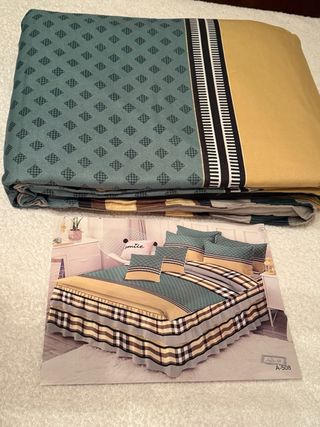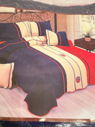 Ver fotos y medidas,desde fabricación no lleva etiqueta de composición! Colcha de alta calidad confeccionada en algodón , suave al tacto y muy agradable para todas las estaciones. Estampado moderno realizado con tecnología avanzada que no pierde color si se siguen las instrucciones de lavado. 📏 Medidas: • Colcha: 230 x 250 cm • 2 fundas de almohada: 60 x 80 cm • 2 fundas de almohada: 55 x 55 cm